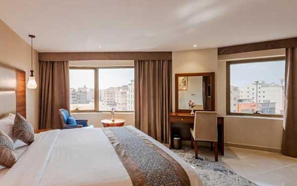 السعوديةيقـع هذا الفندق على بعد 3.7 كم من المسجد النبوى و يبعد عن مطار الأمير محمد عبدالعزيز بمسافة 10كم الوحـدات الفـندقية المتاحـة للتبـادل سعة فـردين أقـل مدة للتبادل 3 ليـالى و تبداء و تنتهى من أى يوم جميع الوحدات الفـندقية مكـيفه و لا يوجد بها مطبخ